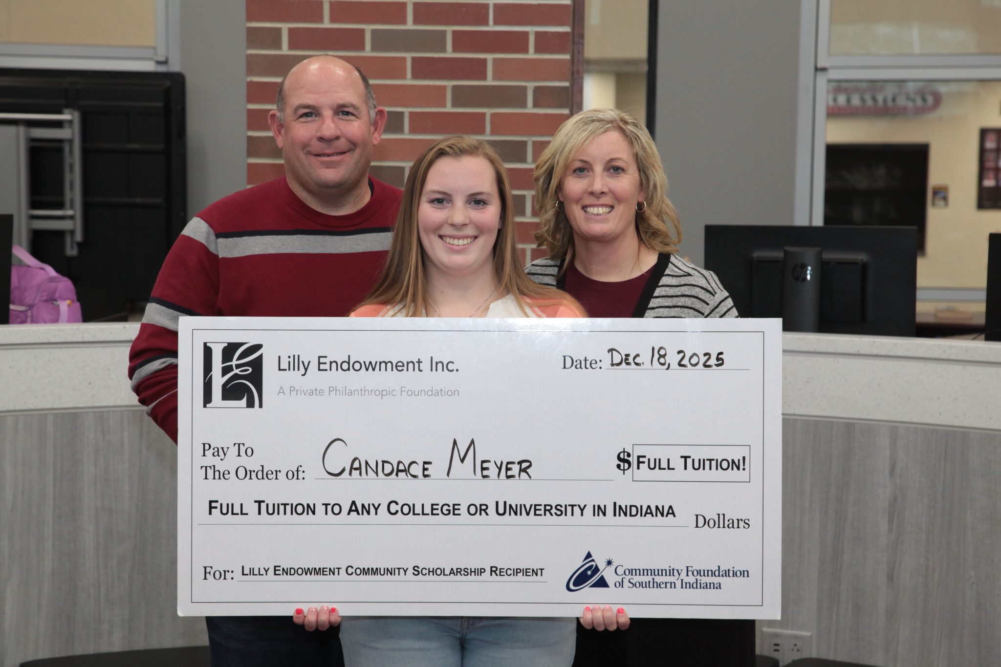 Two students residing in each local county were selected to receive the Lilly Endowment Community Scholarship, which provides full tuition, required fees, and a special allocation of up to $900 per year for required books and equipment for undergraduate study on a full-time basis leading to a baccalaureate degree at any accredited Indiana public or private college or university.