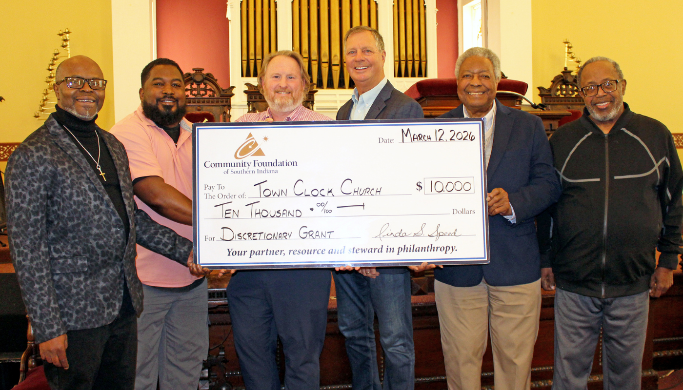 “On behalf of the board of directors and members of the Town Clock Church, we are sincerely thankful for the generous gift supporting our efforts to make Southern Indiana a better place to live for all,” said Rev. LeRoy V. Marshall. “The Community Foundation’s ongoing care for our region has not gone unnoticed by its residents. Because of partnerships like these, we see a bright future for our local nonprofits.”